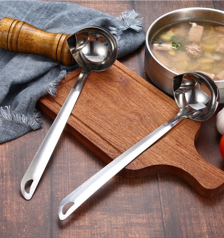 Produktbezeichnung: Hot Pot Soup Spoon – Edelstahl-Suppenlöffel mit Fetttrenner-Funktion zum Abgießen öliger Speisen